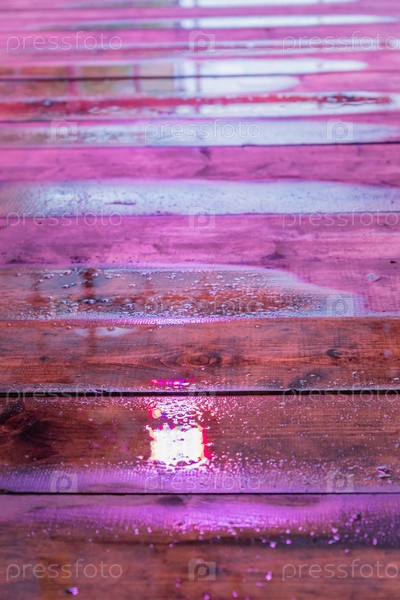 Влажный деревянный стол под светодиодной подсветкой. Фоновая текстура