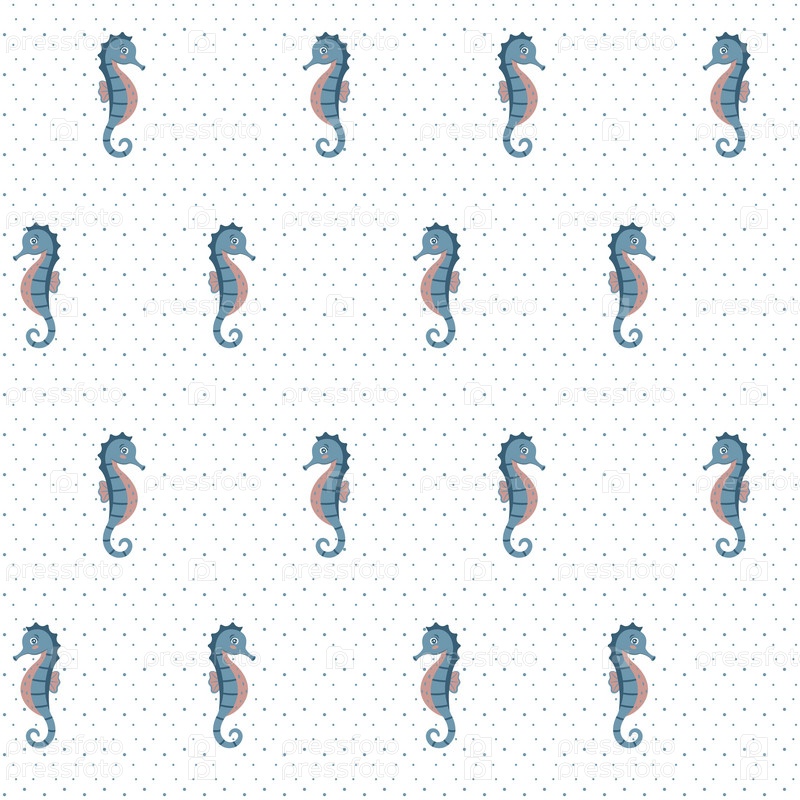Бесшовный рисунок морского конька на белом фоне. Цветная векторная иллюстрация для тканей, оберток