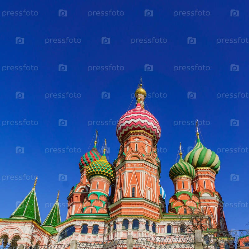 Собор Василия Блаженного на Красной площади в Москве. Купола собора освещены солнцем