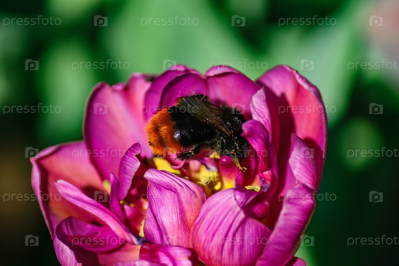Клоу из цветущего фиолетового тюльпана и сидящего на нем шмеля