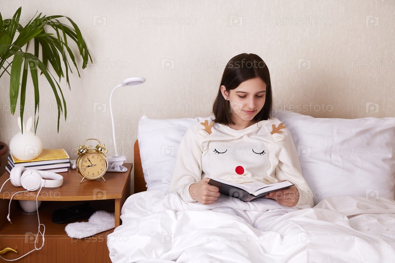 Девочка-подросток сидит в постели под одеялом