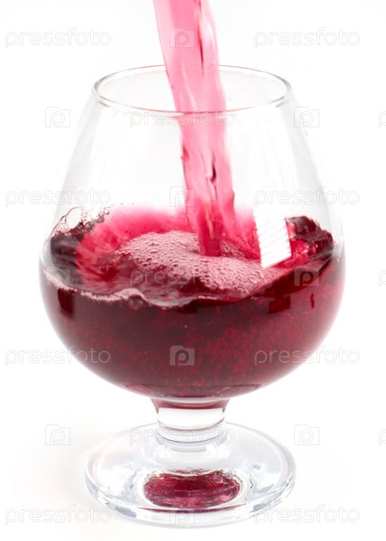 Поток красного вина при наливании в бокал