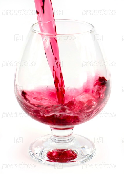 Поток красного вина при наливании в бокал