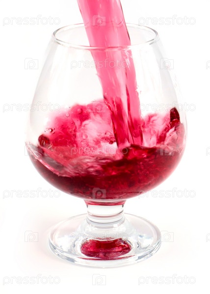 Поток красного вина при наливании в бокал