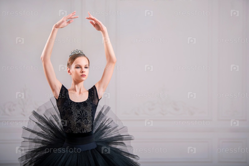 Портрет новой балерины в черной пачке в классической позе