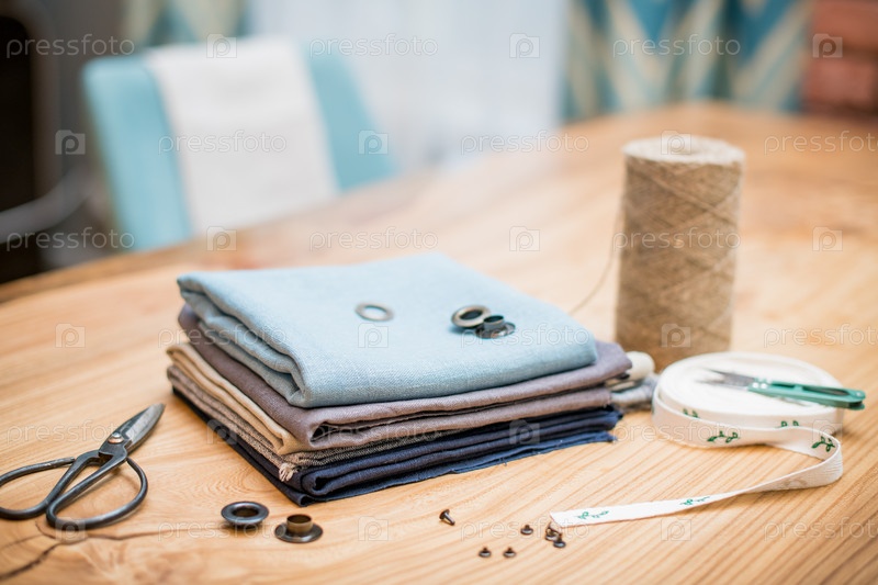 Заплатка из льняной ткани и набор инструментов для рукоделия