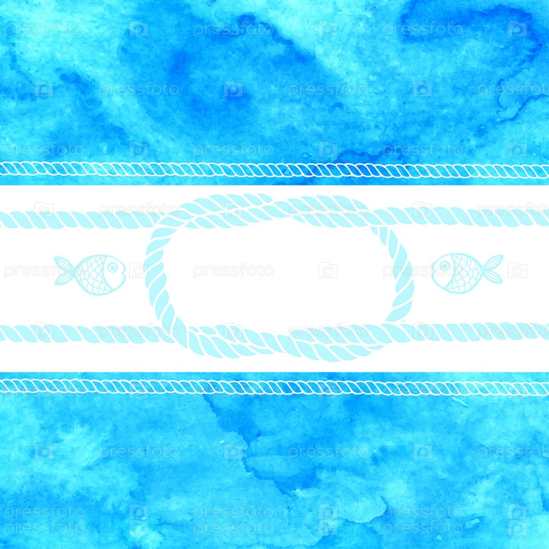 Морская карта с рамкой, морскими узлами, веревками и рыбой на акварельном фоне. Векторный фон