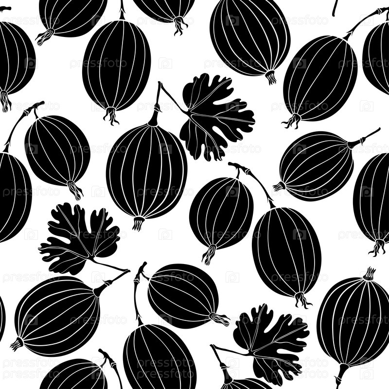 Бесшовный рисунок с крыжовником. Черно-белый векторный фон