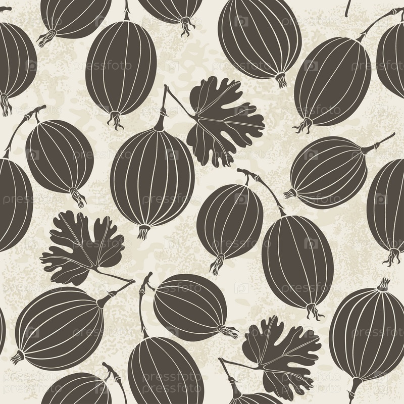 Бесшовный рисунок с крыжовником. Монохромный векторный фон