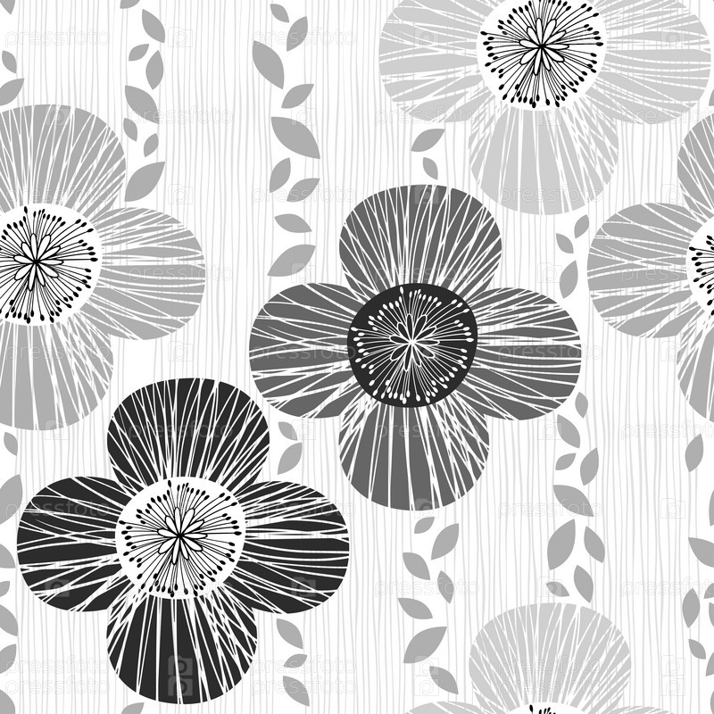 Монохромный бесшовный рисунок с маками. Ручной обращается цветочный фон