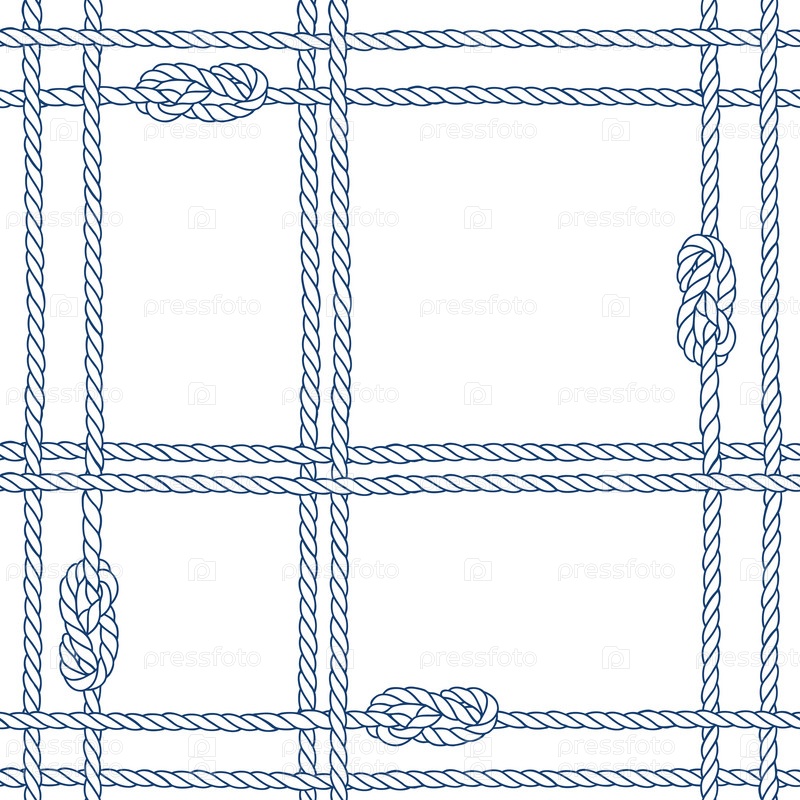 Бесшовный рисунок с морской веревкой и узлами на белом фоне