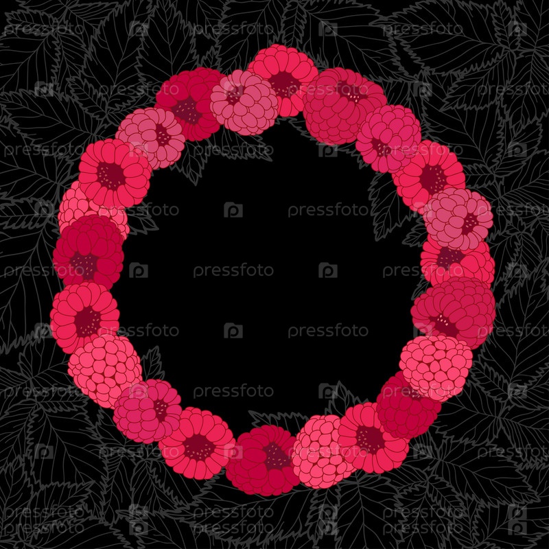 Векторная рамка с малиной. Иллюстрация с местом для текста может быть использована для создания открытки, меню или пригласительного билета
