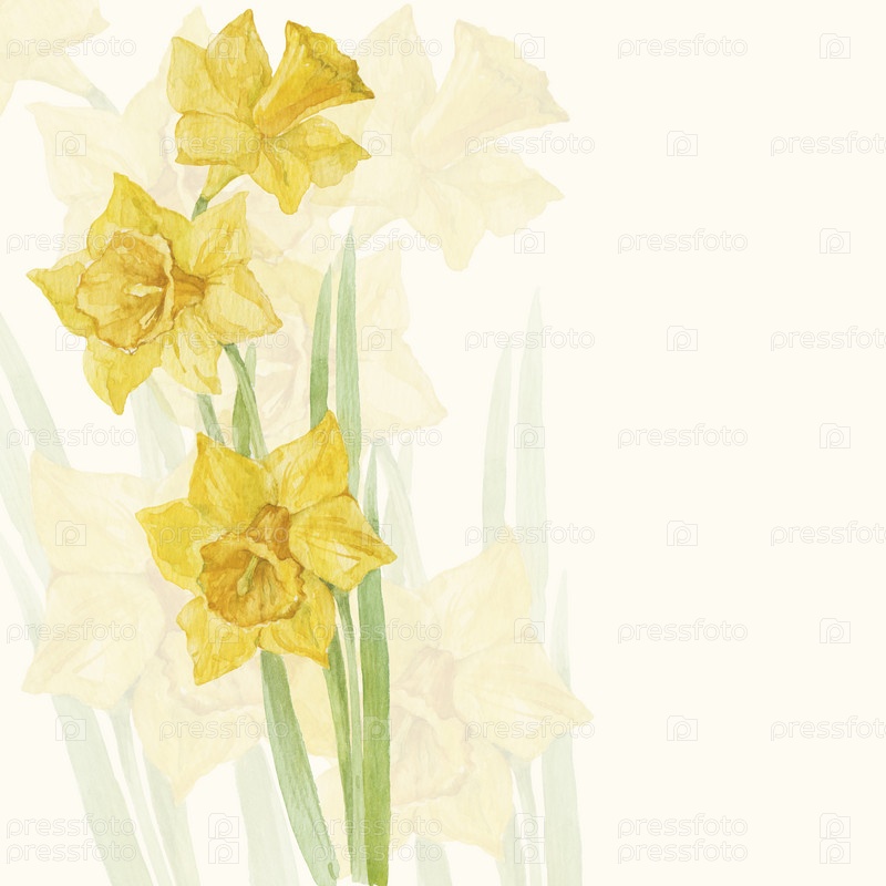 Весенние цветы нарцисса. Цветочный фон, приглашение или открытка. Акварель рисованной иллюстрации