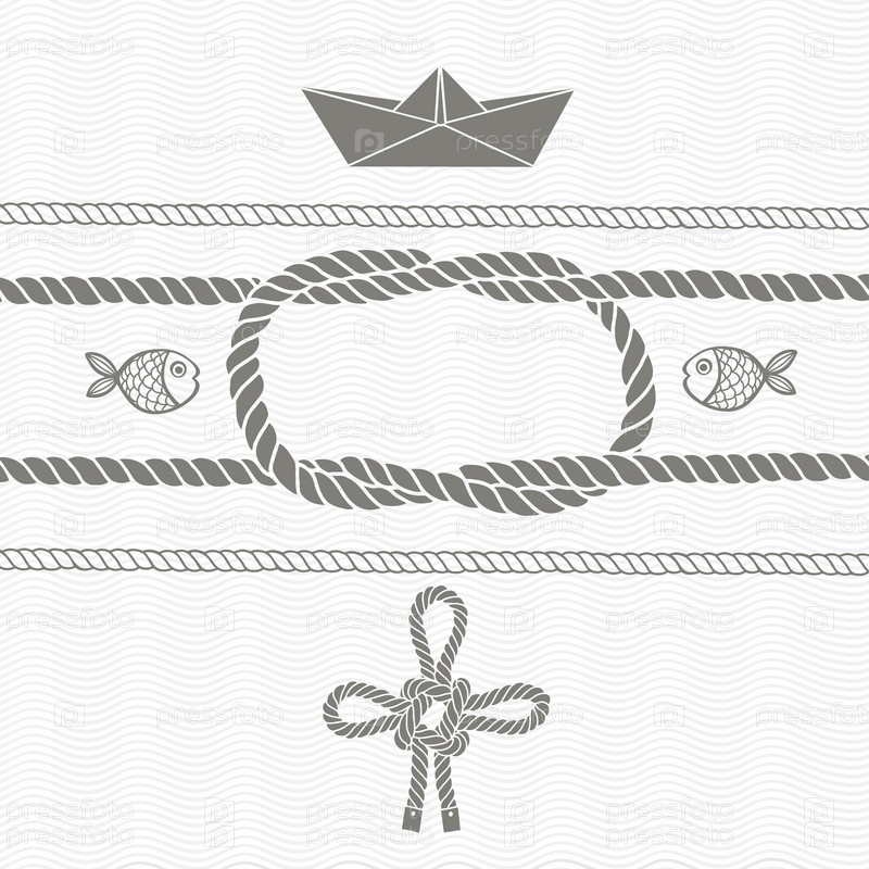 Морская карта с рамкой, морскими узлами, веревками, лодкой и рыбой