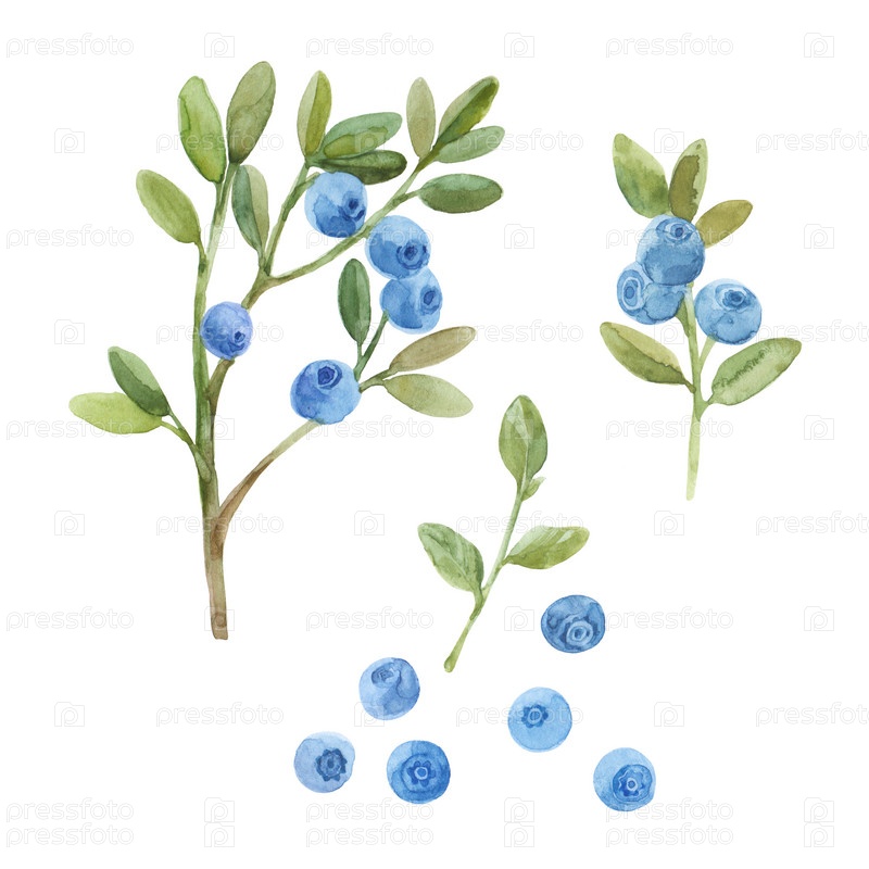Черника. Ручной рисунок акварелью, эскиз. Элементы для дизайна
