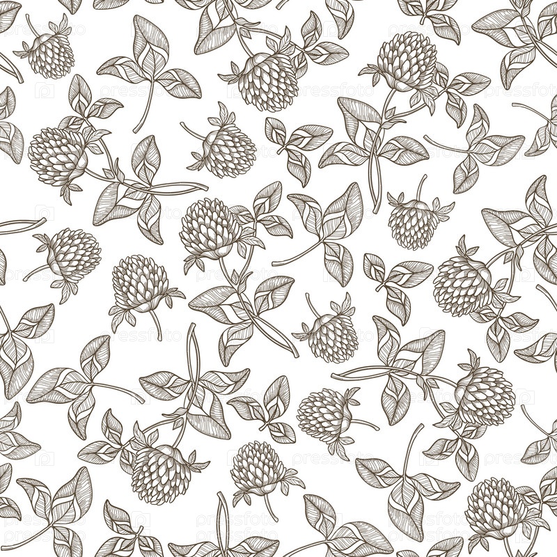 Бесшовный фон с клевером. Монохромный векторный фон, нарисованный вручную