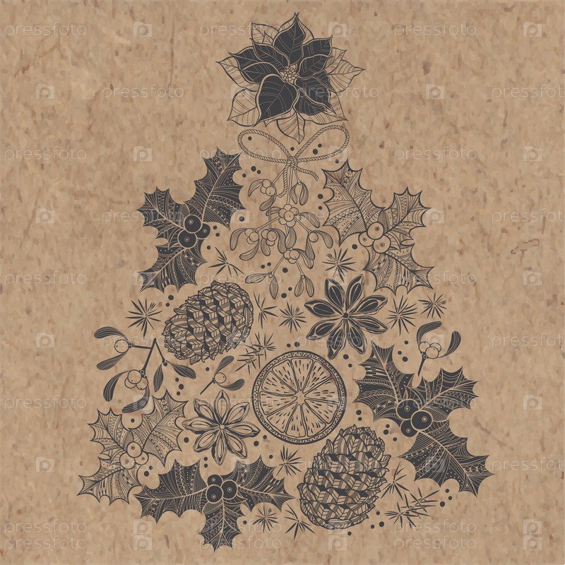 Рождественская елка. Ручная векторная иллюстрация на крафт-фоне