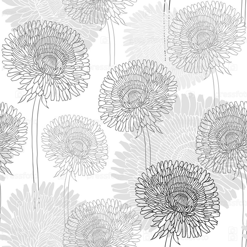 Бесшовный узор из одуванчиков. Ручной рисунок цветочного фона, монохромная векторная иллюстрация
