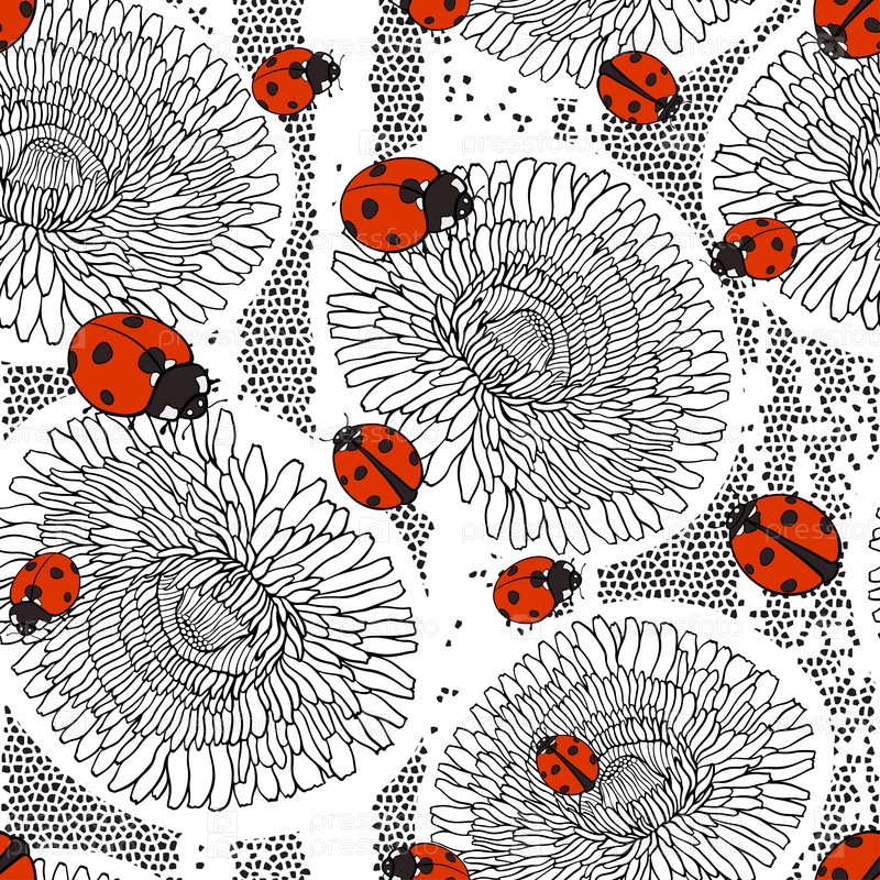 Бесшовный рисунок с одуванчиками и божьими коровками