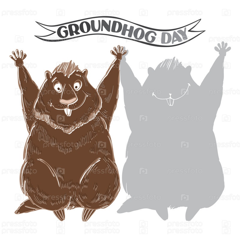 Сурок и тень. Символ дня сурка. Мультфильм векторные иллюстрации на белом фоне