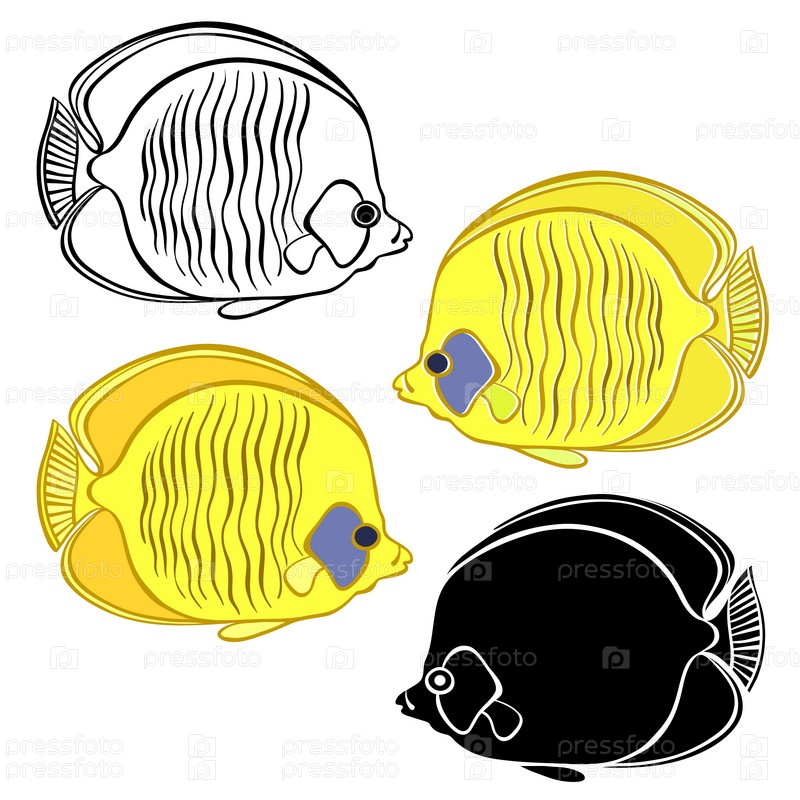 Рыба, векторная иллюстрация на белом фоне. Эскиз, векторный набор. Элементы для дизайна