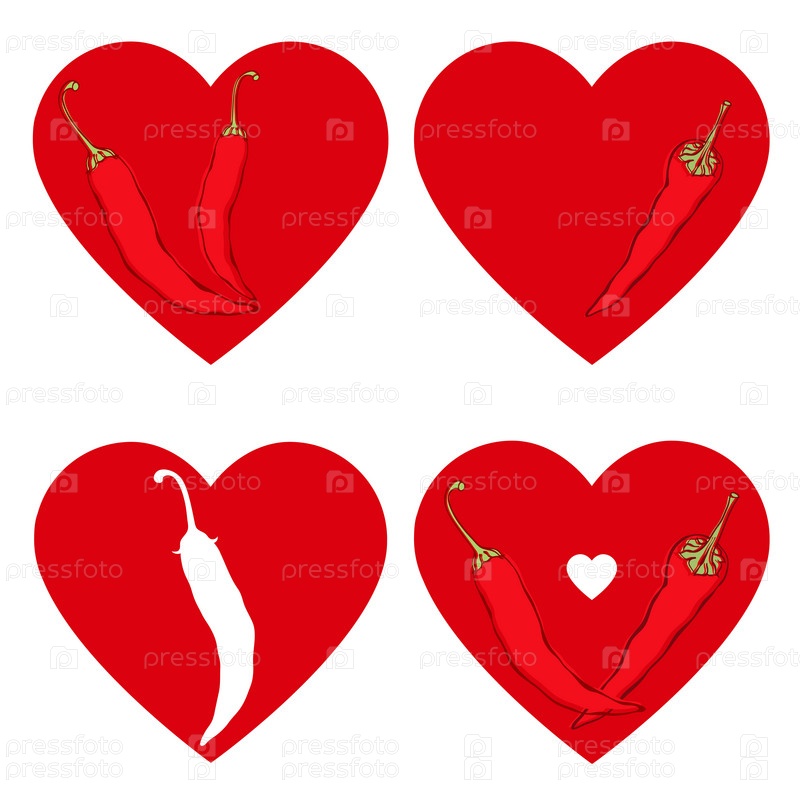Сердце перца чили. Символ страсти и любви. Векторный набор, изолированные на белом фоне