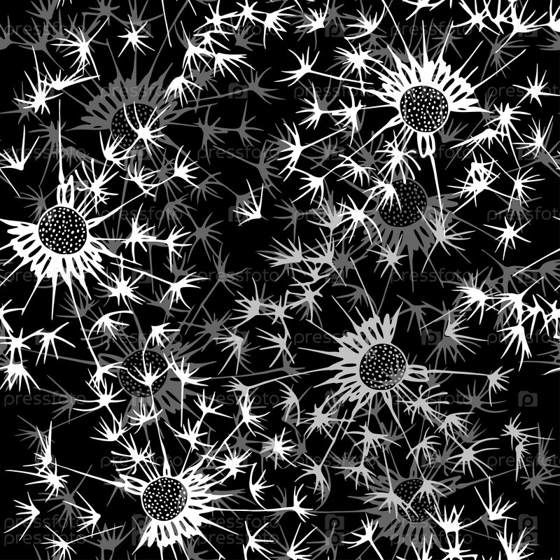 Бесшовный узор из одуванчика. Ручной обращается цветочный фон. Монохромная векторная иллюстрация