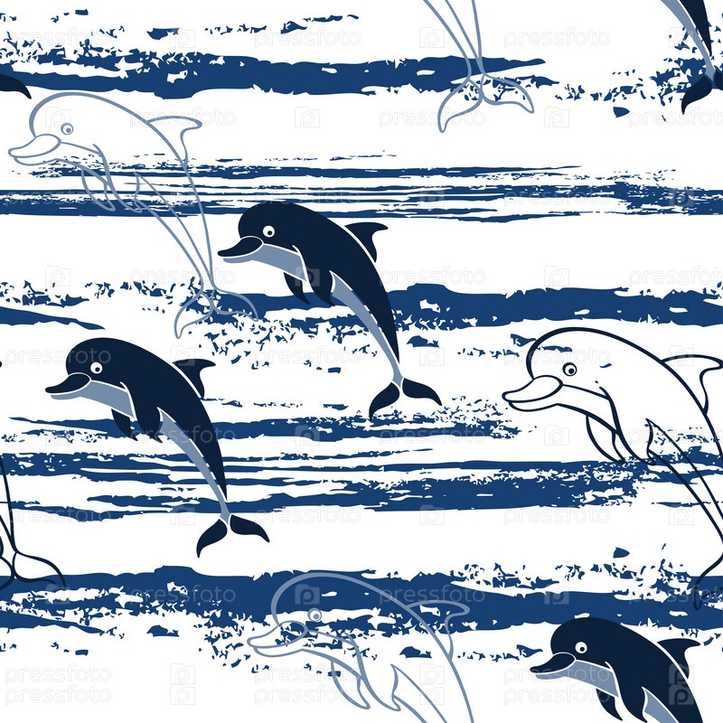 Бесшовный рисунок с мультяшными дельфинами