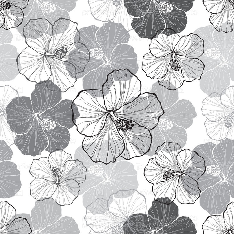Монохромный бесшовный рисунок с цветами гибискуса