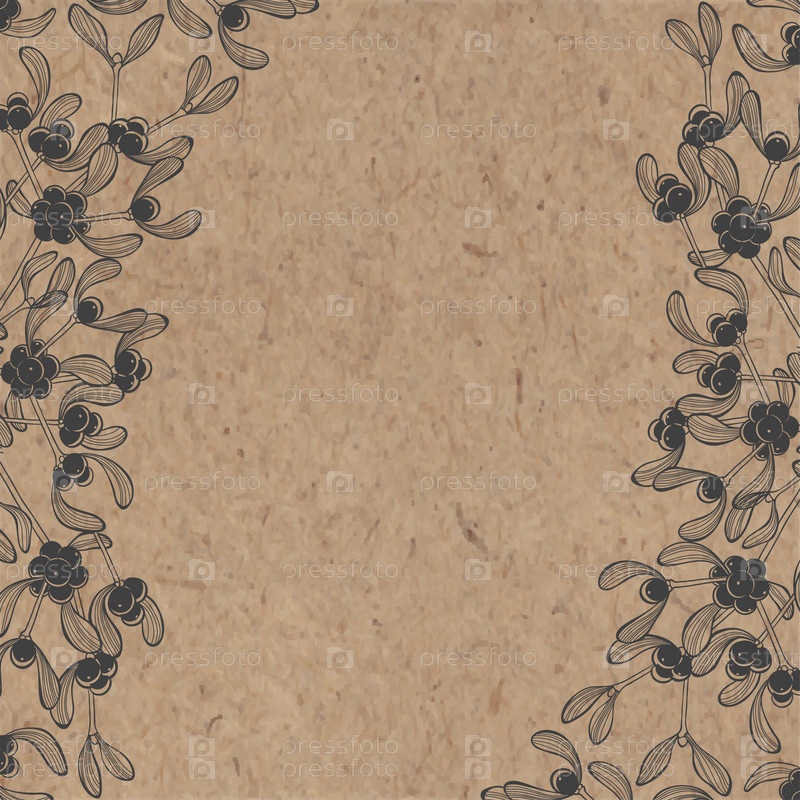 Цветочный фон с омелой на крафт-бумаге. Может быть открытка, приглашение, элемент дизайна