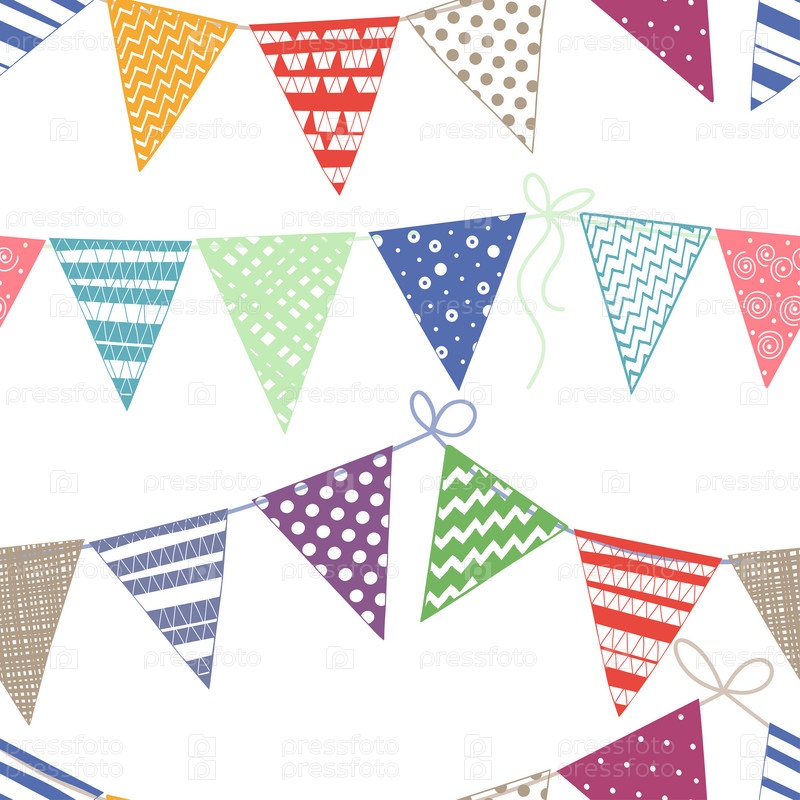 Бесшовный узор с разноцветными яркими гирляндами на белом фоне