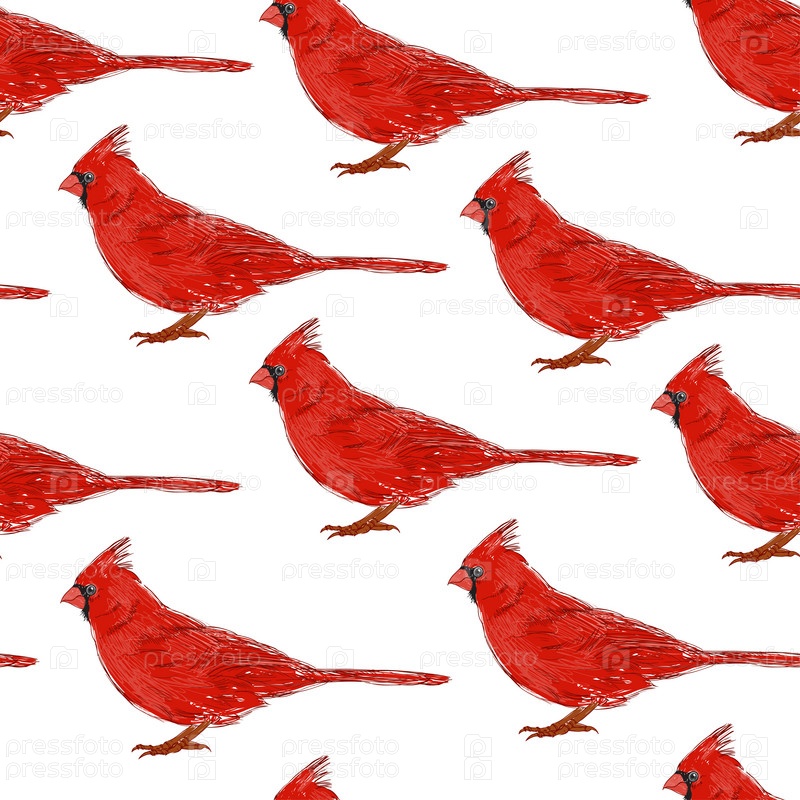 Бесшовный рисунок с кардиналами. Стильный фон животных