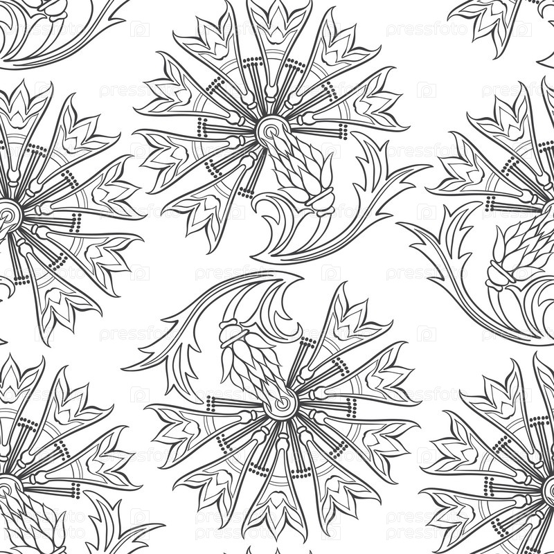 Бесшовный узор со стилизованным васильком. Вектор рисованной цветочный фон
