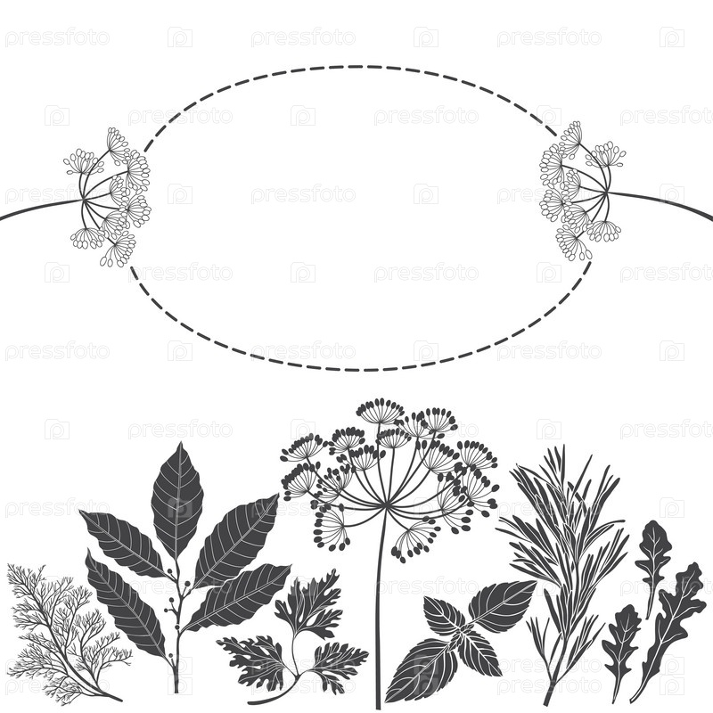 Специи и травы. Иллюстрация с местом для текста может быть использована для создания открытки, меню или пригласительного билета