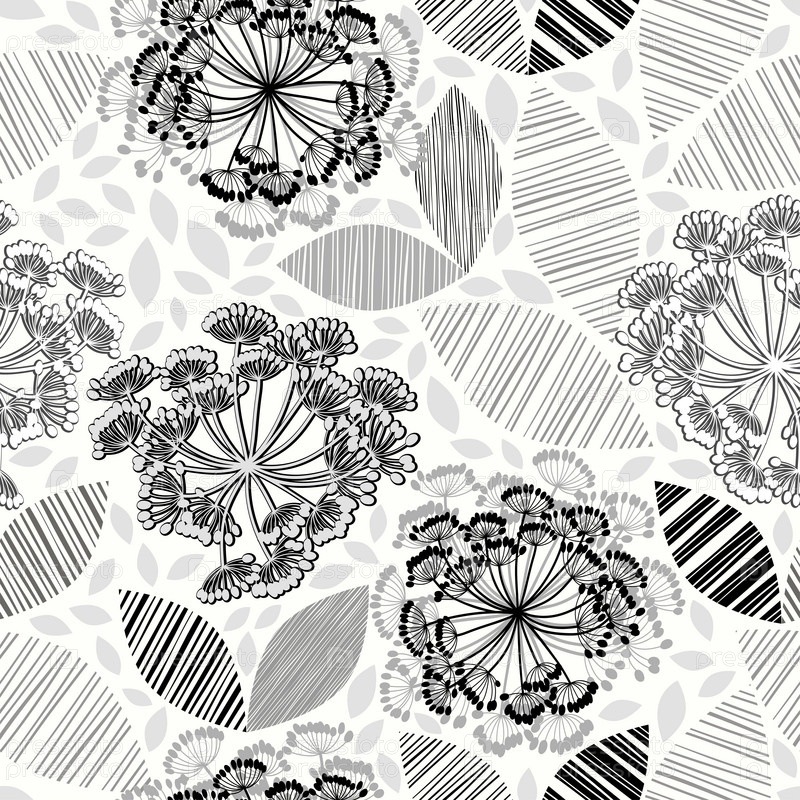 Монохромный бесшовный рисунок абстрактных цветов. Ручной обращается цветочный фон