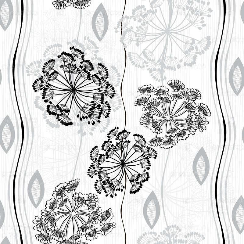 Монохромный бесшовный рисунок абстрактных цветов. Ручной обращается цветочный фон