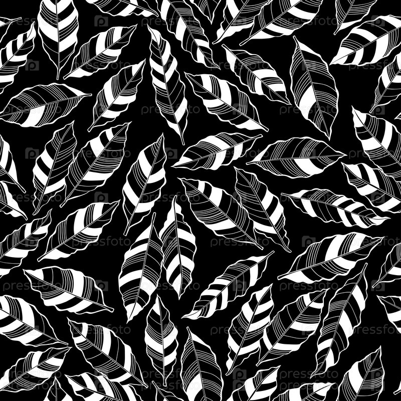 Бесшовный монохромный рисунок с полосатыми абстрактными листьями