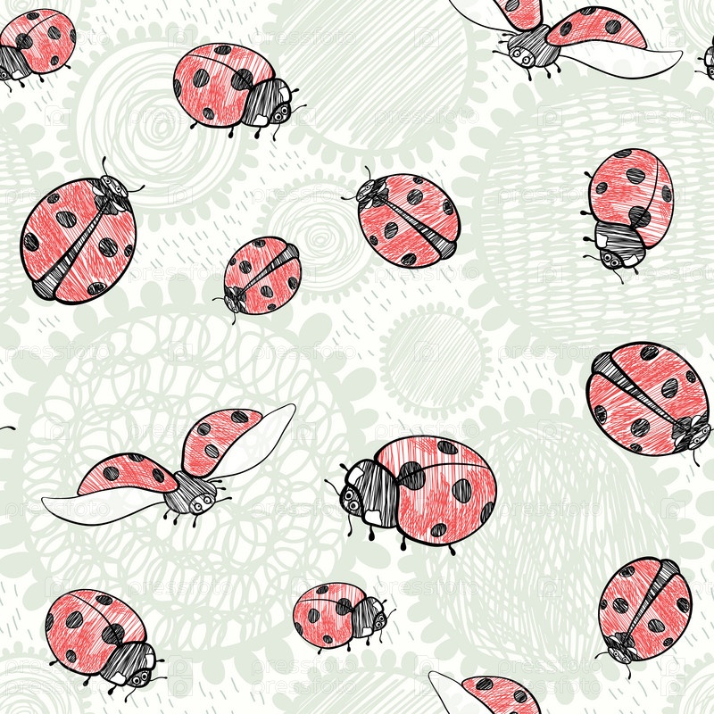 Бесшовный рисунок с божьими коровками. Векторная художественная иллюстрация. Детский фон