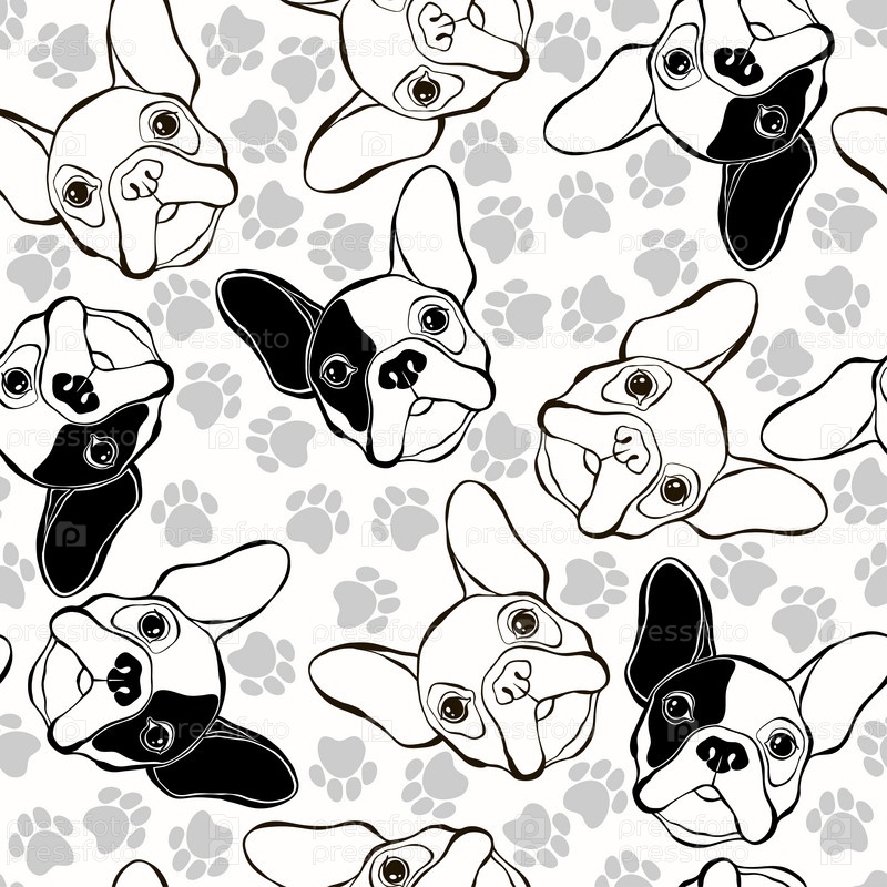 Векторный бесшовный рисунок с французским бульдогом и следами