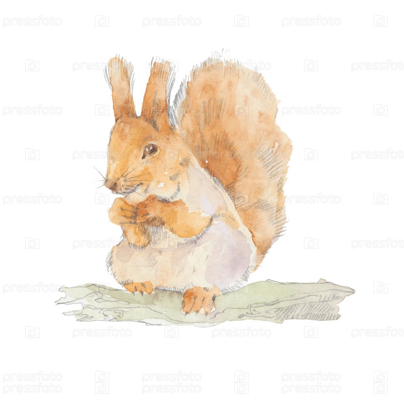 Белка. Ручная акварельная иллюстрация. Вектор