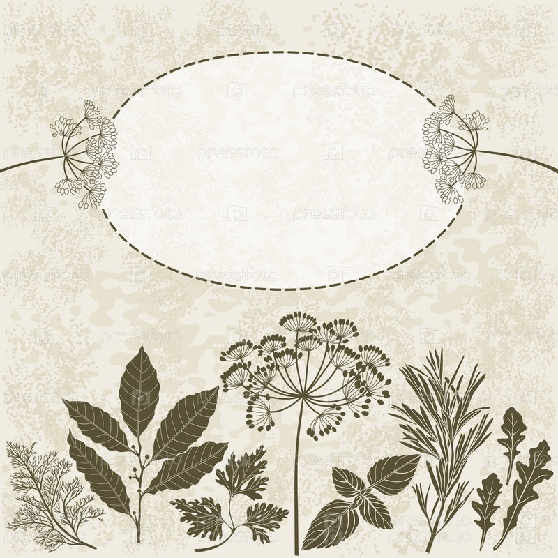 Специи и травы. Иллюстрация с местом для текста может быть использована для создания открытки, меню или пригласительного билета