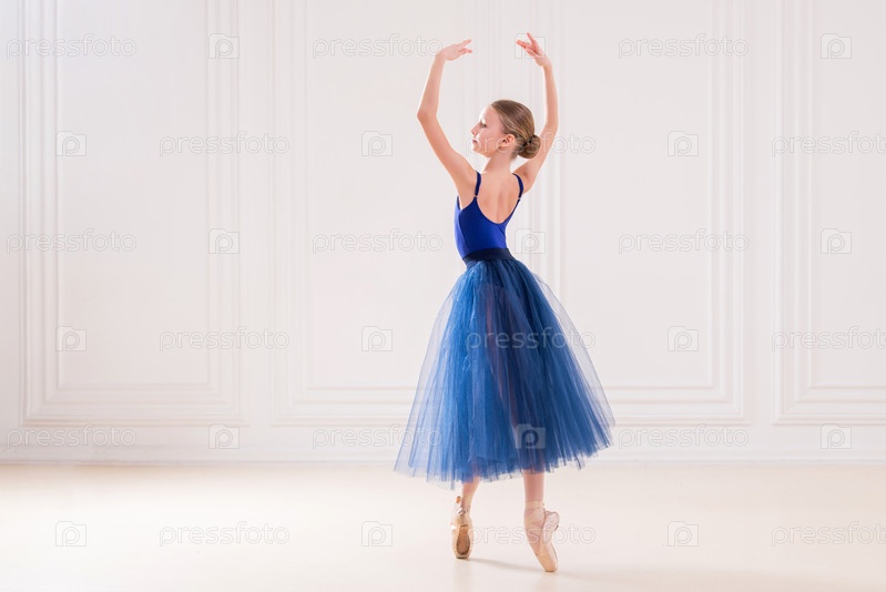Профессиональная студенческая балерина делает пуанты в красивой белой комнате