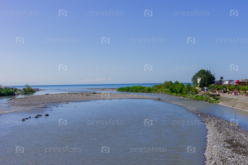 СОЧИ, РОССИЯ - 07 сентября 2019 г.: Вид на набережную реки Мзымта в Роза Хутор