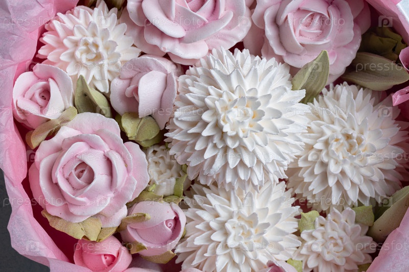 Зефирный букет цветов в подарочной коробке на светлом фоне