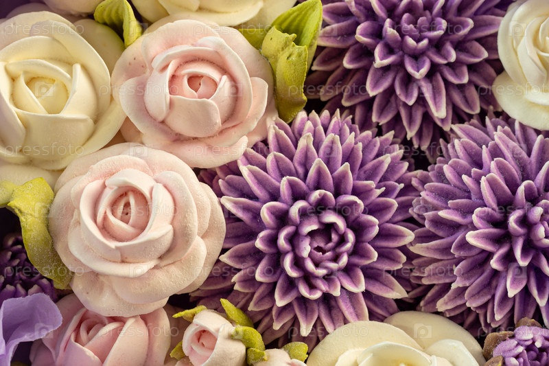 Зефирный букет цветов в подарочной коробке на светлом фоне