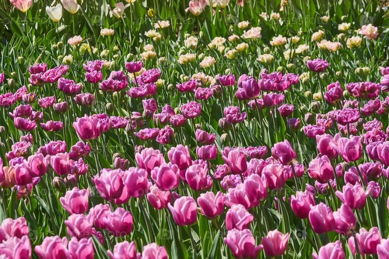 Красивые розовые поля тюльпанов весной, естественный фон