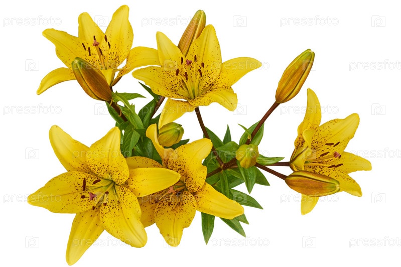 Ветка желтых лилий, изолированные на белом фоне с обрезкой пути