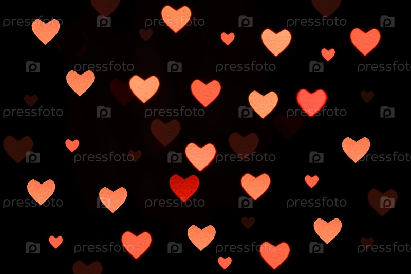 Боке розовые сердца на черном фоне. Праздничная текстура для праздников