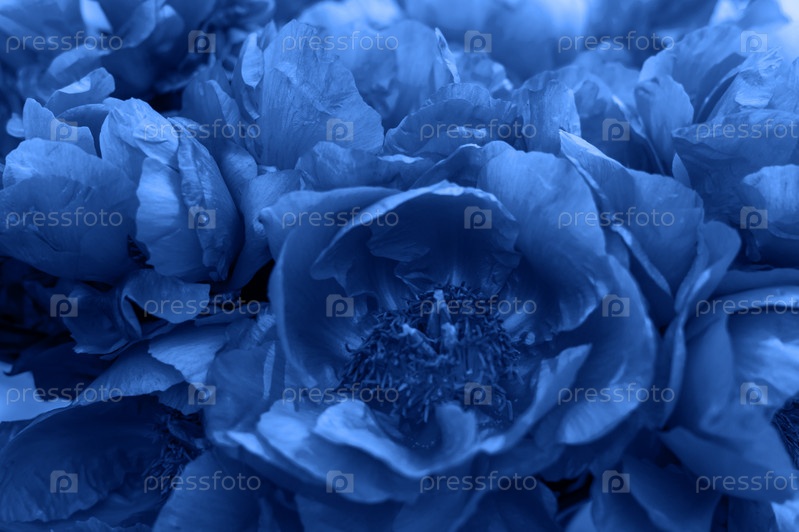 Цветущие цветы пиона. Трендовый цвет 2020 классический синий, фон для дизайна
