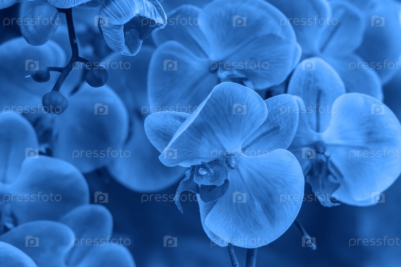 Трендовый цвет 2020 классический синий, искусственный цветочный фон орхидеи